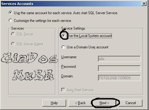 10.Aqui você tem que colocar Local System Account e dar Next.