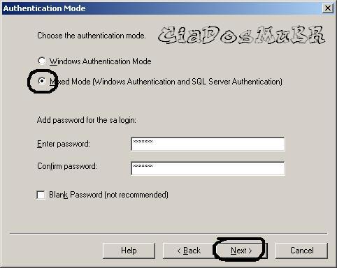 do SQL SERVER, um password dificil logicamente, mas não va se esquecer e dê NEXT.
